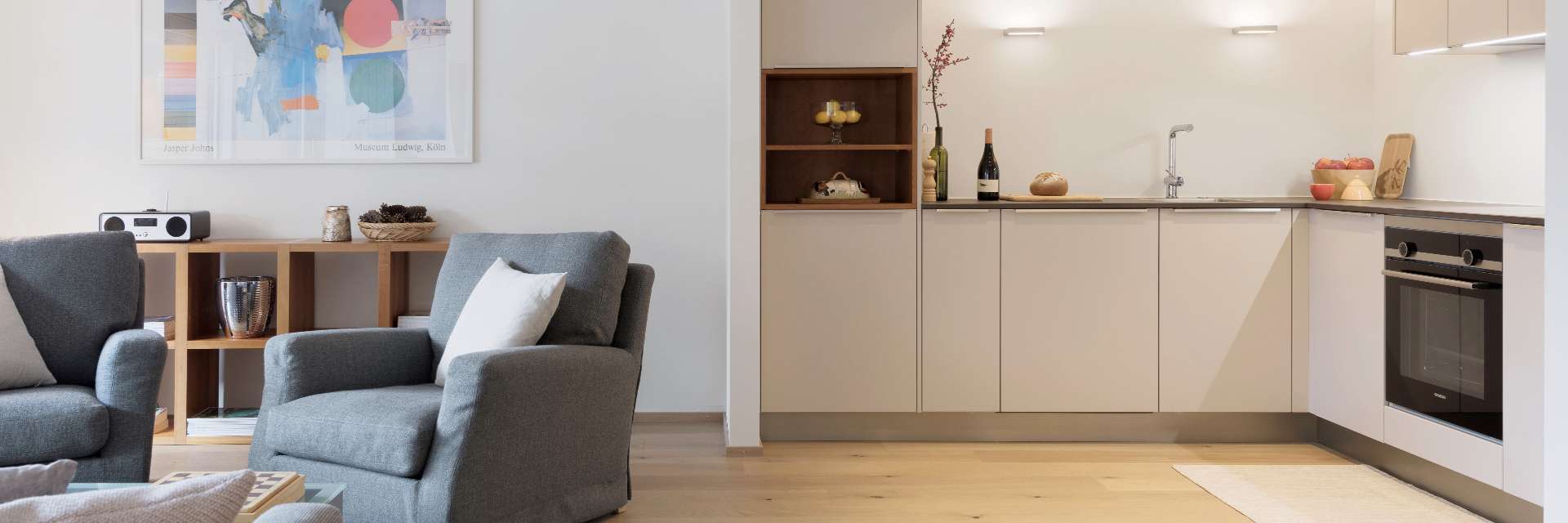 Stilvoll und grosszügig - dies kennzeichnet die geschmackvoll eingerichtete Wohnung mit warmem Holzboden.
