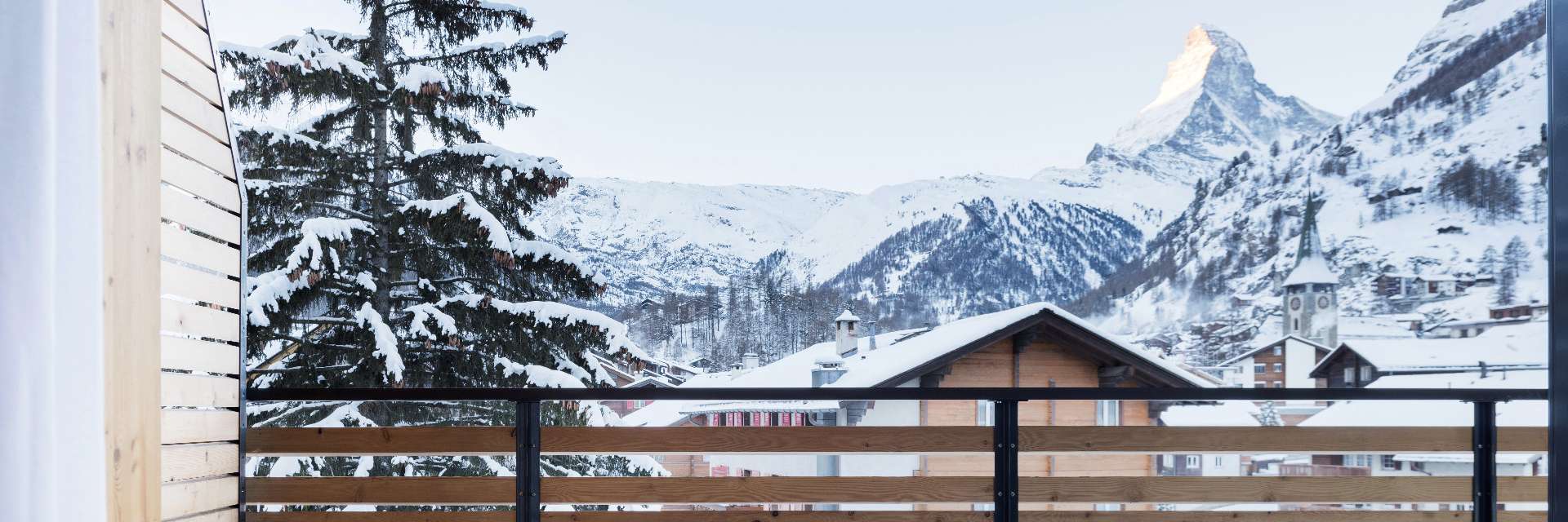 Die ebenerdigen Fenster geben eine wunderschöne Sicht frei aufs Matterhorn.